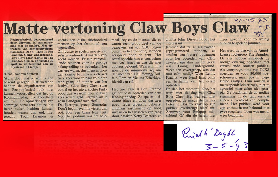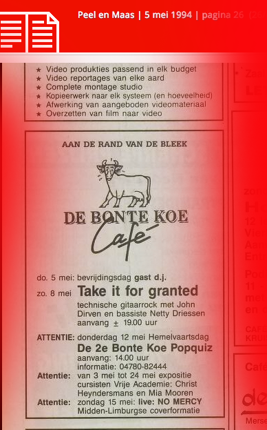 .....................many many times, Oor, Stage, Aardschok, Rif Raf, Big Twin, Mind View, Revu, Eindhovens Dagblad, Friesch Dablad, Groot Eindhoven, Haarlemmermeers Dagblad, Helmonds Dagblad, Traverse, Block, Jassepoes, Hendrixfanclub Germany, Udens Weekblad, Oostbrabant, Gitaar Plus, Gitarist, Volkskrant, Panorama, Alles op Tien,Travers, Aloha,de Sleutel Oss), Tubantia (Twente), de Brug, Leeuwarder Courant, Groovemaster, Dagblad Zaanstreek, Back to the Roots, Metal Maidens, Rockgirl, Kindamuzik, BV Popkrant, Bobtjeblues, Blues Das deutsche Bluesmagazin, Music in Belgium, Brabants Dagblad, Dienblad, Alternative ways, Track, De Stem, Backline, Brabant Pop, Musicmaker, Moors Magazine, GEZIEN-GEHOORD.NL, Blueszine, Maxazine, de Gelderlander, Popmagazine Heaven, Festivalinfo, File Under, and lots of local papers, alone or in combination with Take it for granted, Netty Driessen, Rosa King, Rob Hoeke, Sander Boes, Ben van de Wal, Bertus Borgers, Walter Trout, Ana Popovic, Jesse Gang, Ritchie Severijns, Eamonn Mccormack, Rob Snijders, Fred Hoogendoorn, Sjoerd van Bommel, Hans Dulfer, Peter van Schadewijk, Iwan Wijnen, Tony Peters, Bonki Bongaerts, Thijs van Leer, John Lagrand, Nicko Christiansen and many many more and lots of radio, local, national and all over the globe from Japan, Spain, UK, Denmark, Germany to the USA and back...............