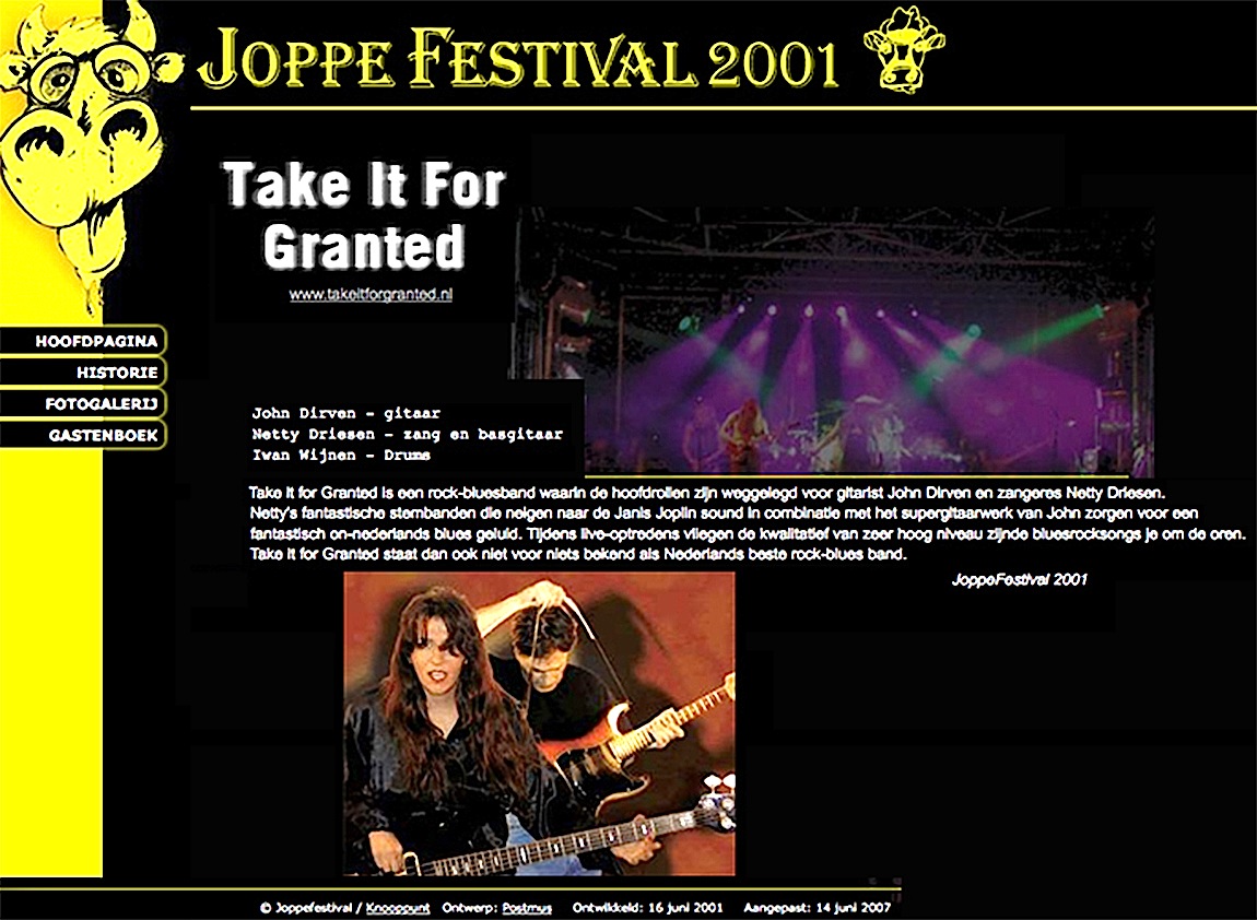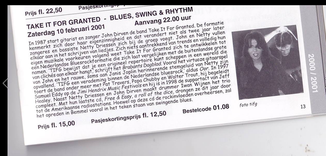 .....................many many times, Oor, Stage, Aardschok, Rif Raf, Big Twin, Mind View, Revu, Eindhovens Dagblad, Friesch Dablad, Groot Eindhoven, Haarlemmermeers Dagblad, Helmonds Dagblad, Traverse, Block, Jassepoes, Hendrixfanclub Germany, Udens Weekblad, Oostbrabant, Gitaar Plus, Gitarist, Volkskrant, Panorama, Alles op Tien,Travers, Aloha,de Sleutel Oss), Tubantia (Twente), de Brug, Leeuwarder Courant, Groovemaster, Dagblad Zaanstreek, Back to the Roots, Metal Maidens, Rockgirl, Kindamuzik, BV Popkrant, Bobtjeblues, Blues Das deutsche Bluesmagazin, Music in Belgium, Brabants Dagblad, Dienblad, Alternative ways, Track, De Stem, Backline, Brabant Pop, Musicmaker, Moors Magazine, GEZIEN-GEHOORD.NL, Blueszine, Maxazine, de Gelderlander, Popmagazine Heaven, Festivalinfo, File Under, and lots of local papers, alone or in combination with Take it for granted, Netty Driessen, Rosa King, Rob Hoeke, Sander Boes, Ben van de Wal, Bertus Borgers, Walter Trout, Ana Popovic, Jesse Gang, Ritchie Severijns, Eamonn Mccormack, Rob Snijders, Fred Hoogendoorn, Sjoerd van Bommel, Hans Dulfer, Peter van Schadewijk, Iwan Wijnen, Tony Peters, Bonki Bongaerts, Thijs van Leer, John Lagrand, Nicko Christiansen and many many more and lots of radio, local, national and all over the globe from Japan, Spain, UK, Denmark, Germany to the USA and back...............