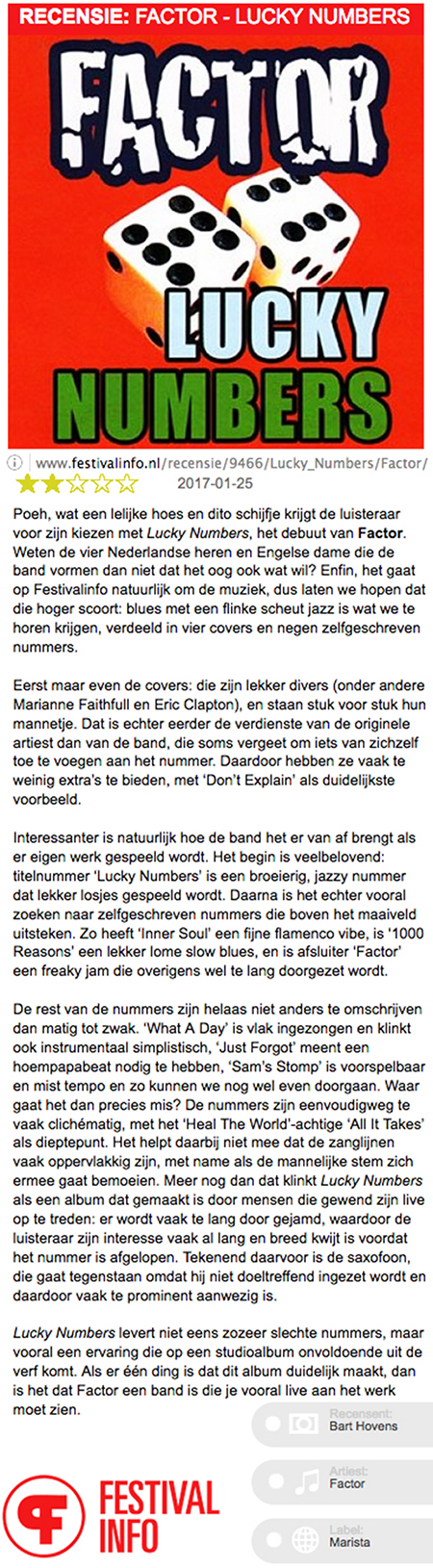 "LUCKY NUMBERS" BY FACTOR