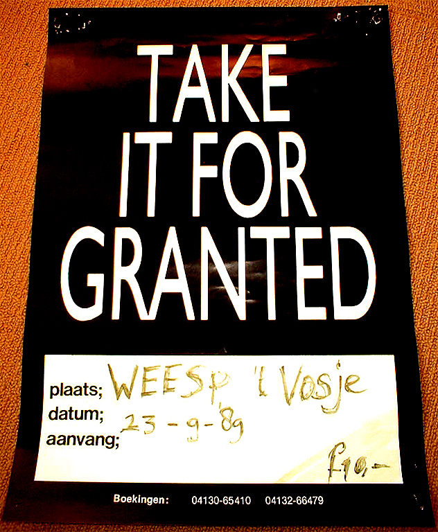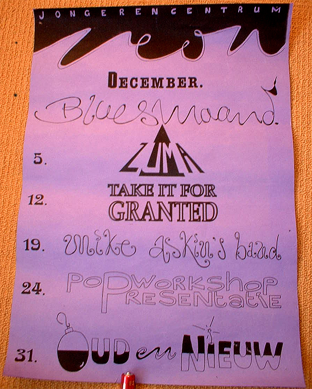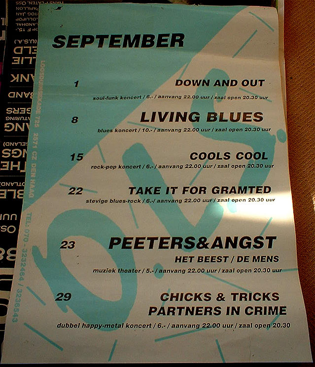 als ik dat geweten had had ik wel wat meer gesprokkeld van de prachtige posters van Oosterpoort Groningen, naar Atlantis Alkmaar, Patronaat Haarlem, naar Tagrijn Hilversum, naar Plein 79 Den Bosch naar Brogum Zierikzee naar Para Breda, naar Willem II, naar Fenix Sittard, naar O13 Tilburg etc.