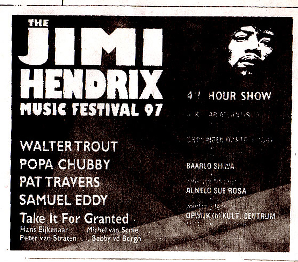 .....................many many times, Oor, Stage, Aardschok, Rif Raf, Big Twin, Mind View, Revu, Eindhovens Dagblad, Friesch Dablad, Groot Eindhoven, Haarlemmermeers Dagblad, Helmonds Dagblad, Traverse, Block, Jassepoes, Hendrixfanclub Germany, Udens Weekblad, Oostbrabant, Gitaar Plus, Gitarist, Volkskrant, Panorama, Alles op Tien,Travers, Aloha,de Sleutel Oss), Tubantia (Twente), de Brug, Leeuwarder Courant, Groovemaster, Dagblad Zaanstreek, Back to the Roots, Metal Maidens, Rockgirl, Kindamuzik, BV Popkrant, Bobtjeblues, Blues Das deutsche Bluesmagazin, Music in Belgium, Brabants Dagblad, Dienblad, Alternative ways, Track, De Stem, Backline, Brabant Pop, Musicmaker, Moors Magazine, GEZIEN-GEHOORD.NL, Blueszine, Maxazine, de Gelderlander, Popmagazine Heaven, Festivalinfo, File Under, and lots of local papers, alone or in combination with Take it for granted, Netty Driessen, Rosa King, Rob Hoeke, Sander Boes, Ben van de Wal, Bertus Borgers, Walter Trout, Ana Popovic, Jesse Gang, Ritchie Severijns, Eamonn Mccormack, Rob Snijders, Fred Hoogendoorn, Sjoerd van Bommel, Hans Dulfer, Peter van Schadewijk, Iwan Wijnen, Tony Peters, Bonki Bongaerts, Thijs van Leer, John Lagrand, Nicko Christiansen and many many more and lots of radio, local, national and all over the globe from Japan, Spain, UK, Denmark, Germany to the USA and back...............