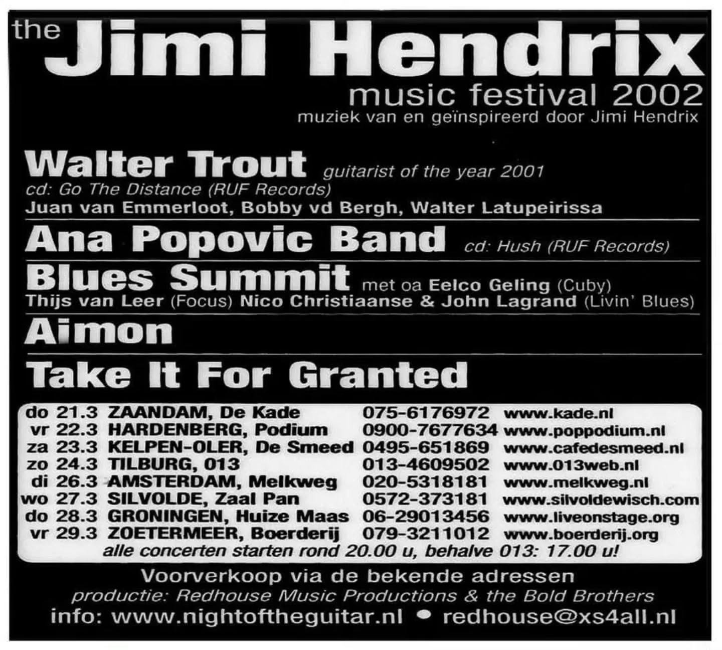 Bonkie Bongaerts (Bots Mr. Albertshow) piano & organ John Dirven bluesharp & guitars & vocals