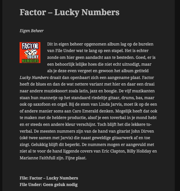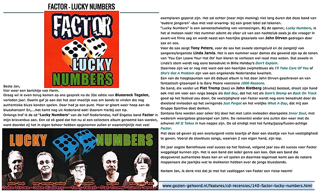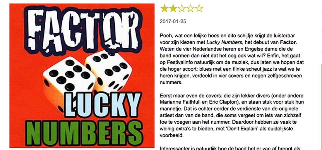 Uit die recensie spreekt boekdelen de aversie tegen de band Factor en de CD Lucky Numbers.