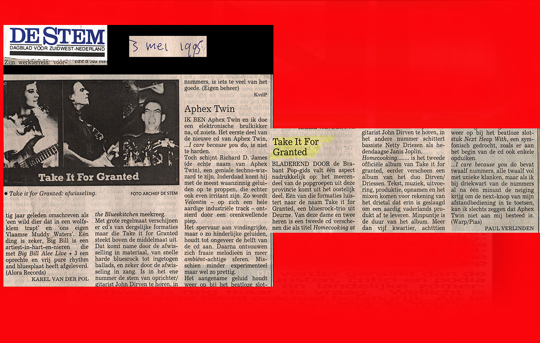 .....................many many times, Oor, Stage, Aardschok, Rif Raf, Big Twin, Mind View, Revu, Eindhovens Dagblad, Friesch Dablad, Groot Eindhoven, Haarlemmermeers Dagblad, Helmonds Dagblad, Traverse, Block, Jassepoes, Hendrixfanclub Germany, Udens Weekblad, Oostbrabant, Gitaar Plus, Gitarist, Volkskrant, Panorama, Alles op Tien,Travers, Aloha,de Sleutel Oss), Tubantia (Twente), de Brug, Leeuwarder Courant, Groovemaster, Dagblad Zaanstreek, Back to the Roots, Metal Maidens, Rockgirl, Kindamuzik, BV Popkrant, Bobtjeblues, Blues Das deutsche Bluesmagazin, Music in Belgium, Brabants Dagblad, Dienblad, Alternative ways, Track, De Stem, Backline, Brabant Pop, Musicmaker, Moors Magazine, GEZIEN-GEHOORD.NL, Blueszine, Maxazine, de Gelderlander, Popmagazine Heaven, Festivalinfo, File Under, and lots of local papers, alone or in combination with Take it for granted, Netty Driessen, Rosa King, Rob Hoeke, Sander Boes, Ben van de Wal, Bertus Borgers, Walter Trout, Ana Popovic, Jesse Gang, Ritchie Severijns, Eamonn Mccormack, Rob Snijders, Fred Hoogendoorn, Sjoerd van Bommel, Hans Dulfer, Peter van Schadewijk, Iwan Wijnen, Tony Peters, Bonki Bongaerts, Thijs van Leer, John Lagrand, Nicko Christiansen and many many more and lots of radio, local, national and all over the globe from Japan, Spain, UK, Denmark, Germany to the USA and back...............