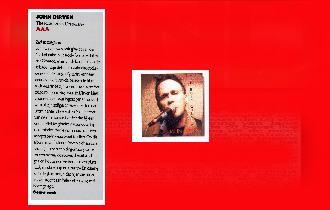 .....................many many times, Oor, Stage, Aardschok, Rif Raf, Big Twin, Mind View, Revu, Eindhovens Dagblad, Friesch Dablad, Groot Eindhoven, Haarlemmermeers Dagblad, Helmonds Dagblad, Traverse, Block, Jassepoes, Hendrixfanclub Germany, Udens Weekblad, Oostbrabant, Gitaar Plus, Gitarist, Volkskrant, Panorama, Alles op Tien,Travers, Aloha,de Sleutel Oss), Tubantia (Twente), de Brug, Leeuwarder Courant, Groovemaster, Dagblad Zaanstreek, Back to the Roots, Metal Maidens, Rockgirl, Kindamuzik, BV Popkrant, Bobtjeblues, Blues Das deutsche Bluesmagazin, Music in Belgium, Brabants Dagblad, Dienblad, Alternative ways, Track, De Stem, Backline, Brabant Pop, Musicmaker, Moors Magazine, GEZIEN-GEHOORD.NL, Blueszine, Maxazine, de Gelderlander, Popmagazine Heaven, Festivalinfo, File Under, and lots of local papers, alone or in combination with Take it for granted, Netty Driessen, Rosa King, Rob Hoeke, Sander Boes, Ben van de Wal, Bertus Borgers, Walter Trout, Ana Popovic, Jesse Gang, Ritchie Severijns, Eamonn Mccormack, Rob Snijders, Fred Hoogendoorn, Sjoerd van Bommel, Hans Dulfer, Peter van Schadewijk, Iwan Wijnen, Tony Peters, Bonki Bongaerts, Thijs van Leer, John Lagrand, Nicko Christiansen and many many more and lots of radio, local, national and all over the globe from Japan, Spain, UK, Denmark, Germany to the USA and back...............