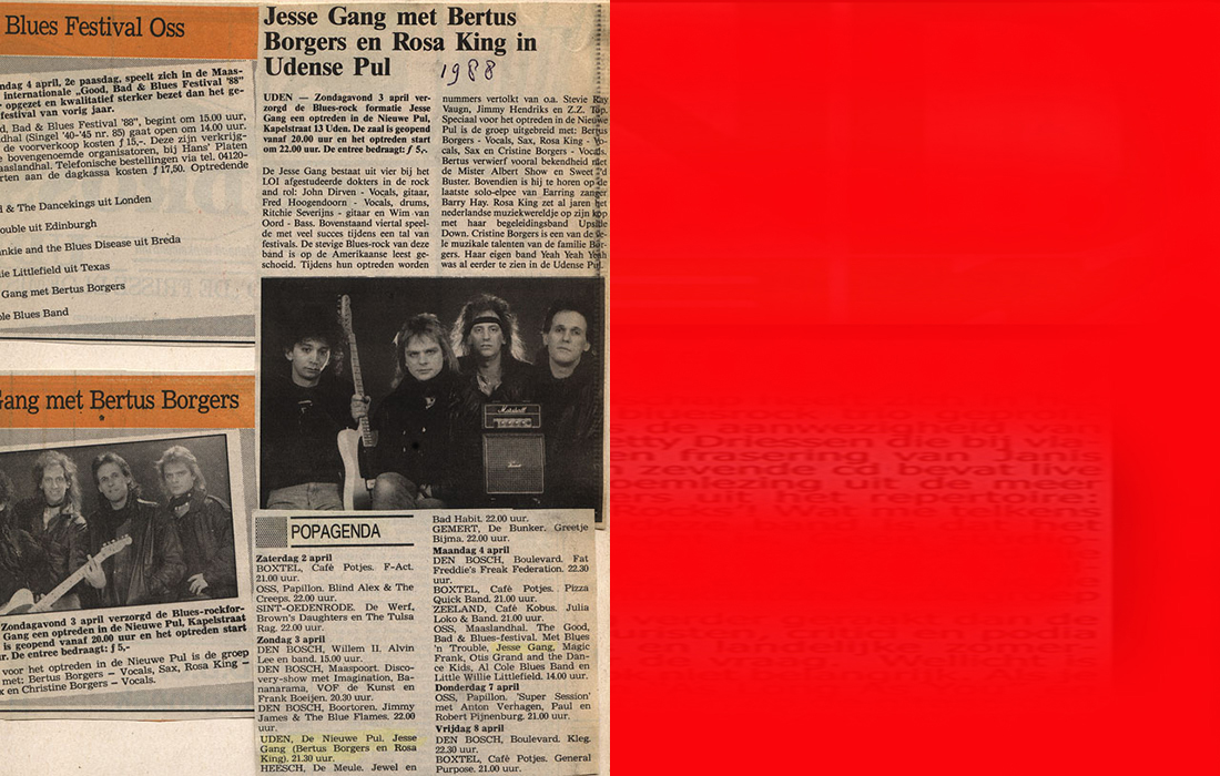 .....................many many times, Oor, Stage, Aardschok, Rif Raf, Big Twin, Mind View, Revu, Eindhovens Dagblad, Friesch Dablad, Groot Eindhoven, Haarlemmermeers Dagblad, Helmonds Dagblad, Traverse, Block, Jassepoes, Hendrixfanclub Germany, Udens Weekblad, Oostbrabant, Gitaar Plus, Gitarist, Volkskrant, Panorama, Alles op Tien,Travers, Aloha,de Sleutel Oss), Tubantia (Twente), de Brug, Leeuwarder Courant, Groovemaster, Dagblad Zaanstreek, Back to the Roots, Metal Maidens, Rockgirl, Kindamuzik, BV Popkrant, Bobtjeblues, Blues Das deutsche Bluesmagazin, Music in Belgium, Brabants Dagblad, Dienblad, Alternative ways, Track, De Stem, Backline, Brabant Pop, Musicmaker, Moors Magazine, GEZIEN-GEHOORD.NL, Blueszine, Maxazine, de Gelderlander, Popmagazine Heaven, Festivalinfo, File Under, and lots of local papers, alone or in combination with Take it for granted, Netty Driessen, Rosa King, Rob Hoeke, Sander Boes, Ben van de Wal, Bertus Borgers, Walter Trout, Ana Popovic, Jesse Gang, Ritchie Severijns, Eamonn Mccormack, Rob Snijders, Fred Hoogendoorn, Sjoerd van Bommel, Hans Dulfer, Peter van Schadewijk, Iwan Wijnen, Tony Peters, Bonki Bongaerts, Thijs van Leer, John Lagrand, Nicko Christiansen and many many more and lots of radio, local, national and all over the globe from Japan, Spain, UK, Denmark, Germany to the USA and back...............